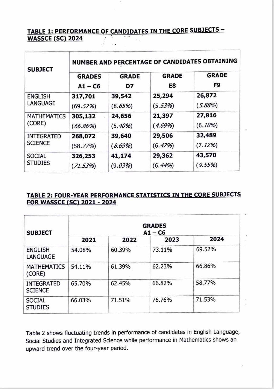 Preliminary statistics suggest a decline in the performance of English Language, Social Studies & Integrated Science compared to 2023, with a slight appreciation in the performance of Core Mathematics.